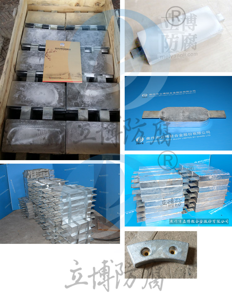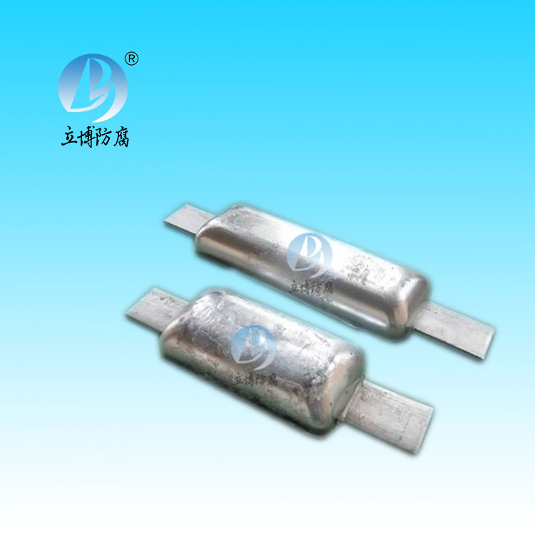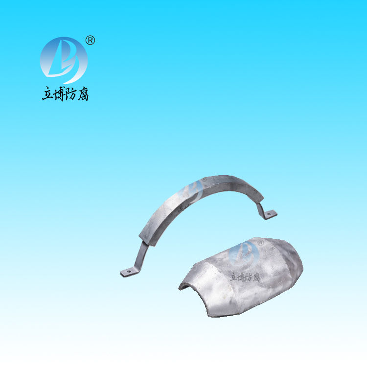 Zinc alloy sacrifical anode is suitable for cathodic protection of metal corrosion in seawater, fresh seawater medium in ships, ballast tanks, machinery and equipment, Marine engineering and harbor facilities, drilling platforms, port wharves, sea water medium condensers, pumps and pipes, cables and other facilities in low resistivity soil.