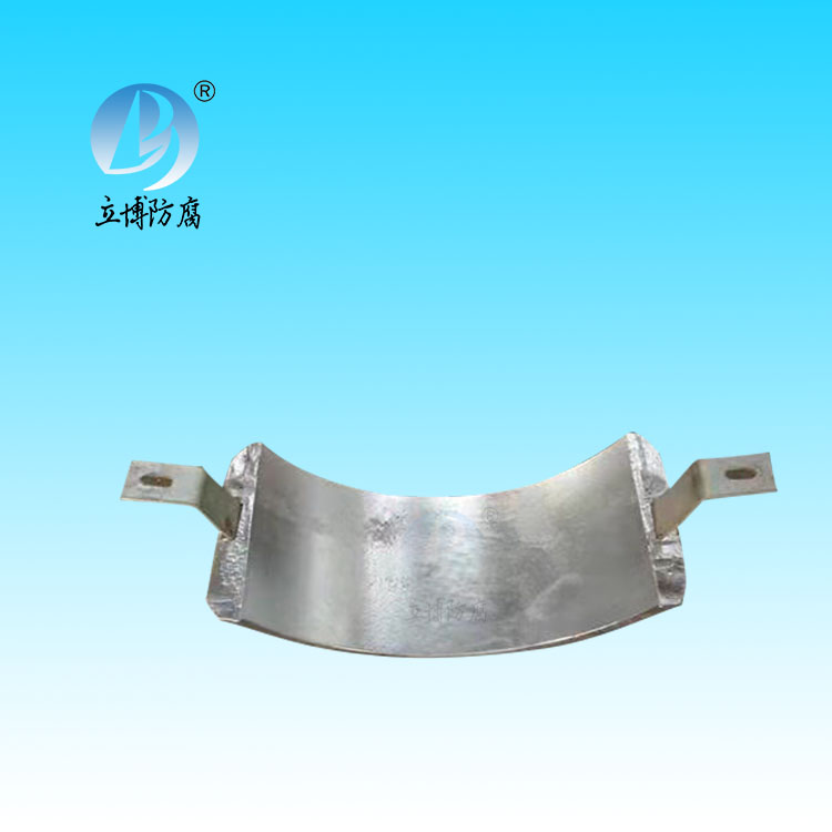 Zinc alloy sacrifical anode is suitable for cathodic protection of metal corrosion protection in seawater, fresh seawater medium in ships, ballast tanks, machinery and equipment, Marine engineering and harbor facilities, drilling platforms, ports and wharves, seawater medium condensers, pumps and pipelines and cables in low resistivity soil.