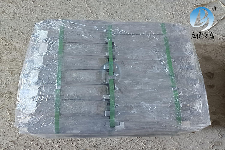 鋅合金陽極對鋼的驅(qū)動電壓僅為0.2V左右,但目前仍然獲得了較廣泛的應(yīng)用。在海船外殼的犧牲陽極保護(hù)中,鋅和鋅合合陽極約占所用全部犧牲陽極的90%左右。在海船艙內(nèi)的保護(hù),特別是油輪艙內(nèi)的保護(hù)時,鋅和鋅合金陽極是唯一可用的犧牲陽極材料,因?yàn)樗鼈兣c鋼結(jié)構(gòu)撞擊時不產(chǎn)生火花。在海水中的管道外保護(hù)時,采用鐲形或半環(huán)形的鋅合金陽極。在微咸水或高鹽水中對容器的內(nèi)保護(hù)也可用這類陽極。在淡水中,鋅合金陽極使用很有限,這是因?yàn)樗鼈兊囊租g化性,且當(dāng)介質(zhì)的導(dǎo)電性低時,陽極的穩(wěn)定電位和極化性都隨時間延長顯著升高。在土壤中應(yīng)用時也是如此。